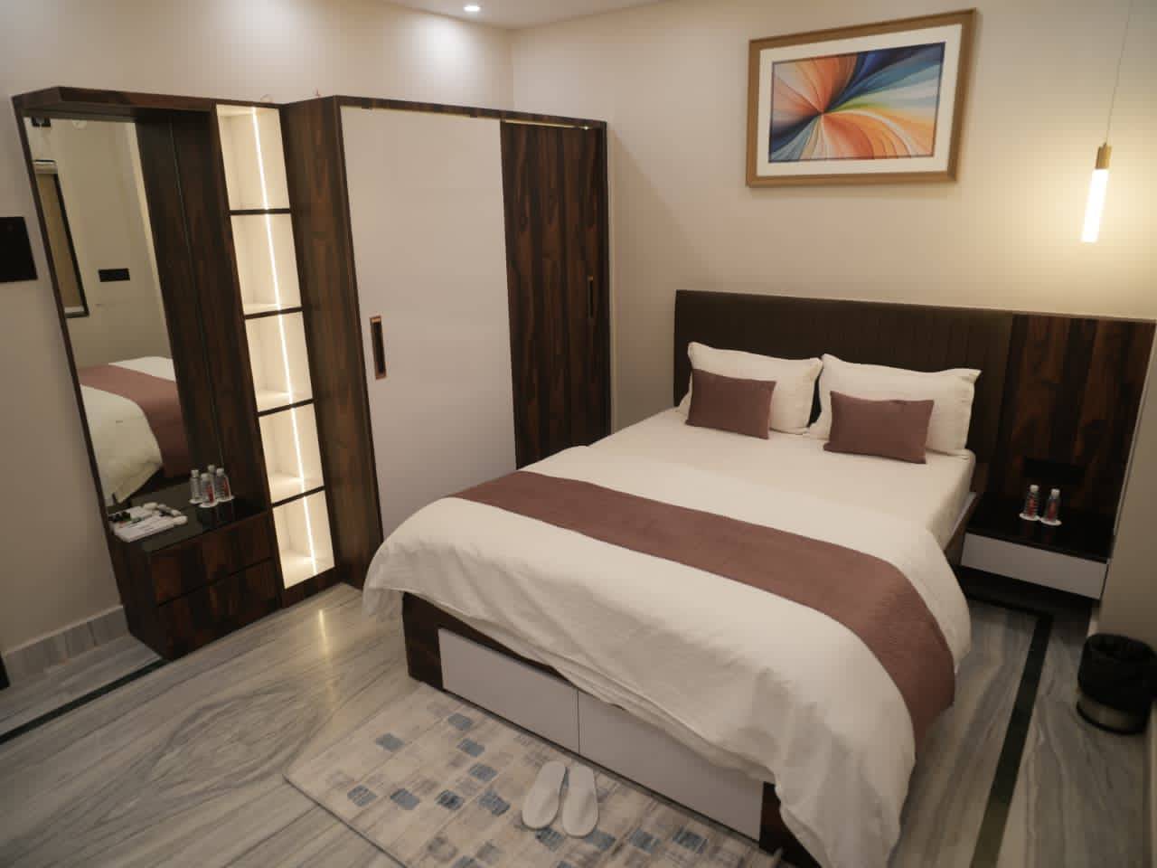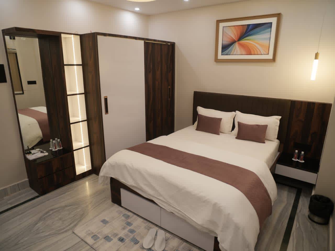 The Deluxe Room with a queen-size bed provides a cozy and comfortable stay, suitable for solo travelers and couples. Neatly designed with a warm, homely feel, the room offers all essential comforts for a pleasant stay. Its functional layout makes it an excellent choice for both short visits and extended stays.